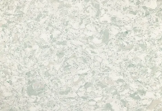 Cool whites and soft, sage greens evoke the beauty of an idyllic seaside escape, enhanced by silver flecks that glint enticingly.